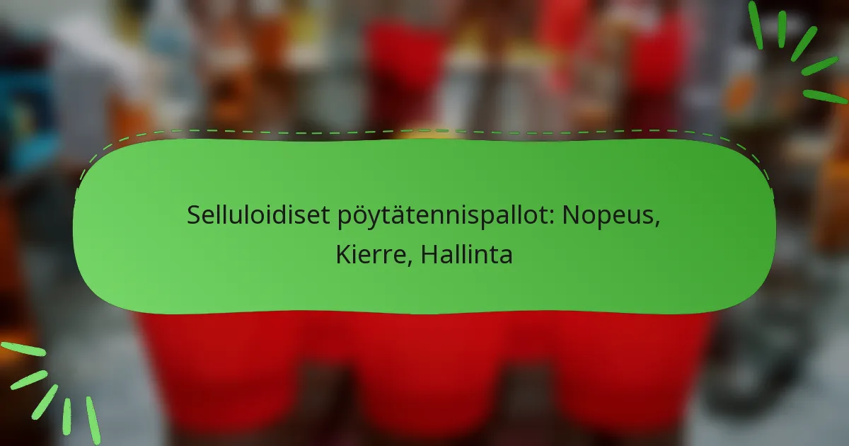 Selluloidiset pöytätennispallot ovat suosittuja niiden ainutlaatuisen nopeuden, spinin ja hallinnan yhdistelmän vuoksi, mikä vaikuttaa merkittävästi peliin. Niiden muotoilu mahdollistaa pelaajien optimoida suorituskykyään ymmärtämällä, miten nopeus ja spin vaikuttavat toisiinsa, kun taas korkea hallintataso mahdollistaa tarkan lyöntien toteuttamisen. Näiden elementtien hallitseminen on olennaista pelaajille, jotka haluavat parantaa taitojaan pöydällä.
