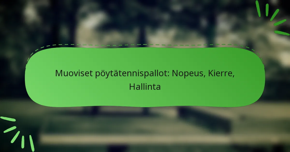 Muovisten pöytätennis-pallojen ympäristövaikutus on merkittävä niiden tuotannon, käytön ja hävittämisen vuoksi. Nämä pallot lisäävät muovisaastetta ja niillä on huomattava hiilijalanjälki, mikä vaikuttaa ekosysteemeihin ja ihmisten terveyteen.