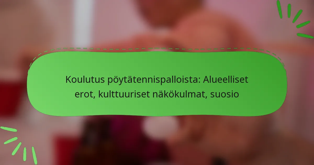 Harjoituspöytätennis-pallot ovat keskeisessä roolissa taitojen kehittämisessä, ja niiden muotoilu ja materiaalikoostumus vaikuttavat suorituskykyyn. Alueelliset erot ja kulttuuriset näkökohdat vaikuttavat merkittävästi näiden pallojen valintaan ja suosioon, heijastaen paikallisia pelityylejä ja yhteisön osallistumista. Näiden tekijöiden ymmärtäminen voi auttaa pelaajia valitsemaan tarpeisiinsa parhaiten sopivat harjoitusvälineet.